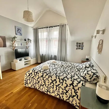 The 1-room Domira Riverside Apartment Prague is situated in an old part of Prague, approximately a 25-minute stroll from the remodeled medieval Gothic city gate "Powder Tower". The 35 m² apartment is located in the Prague 5 district, 2.3 km from the Wenceslas Square.